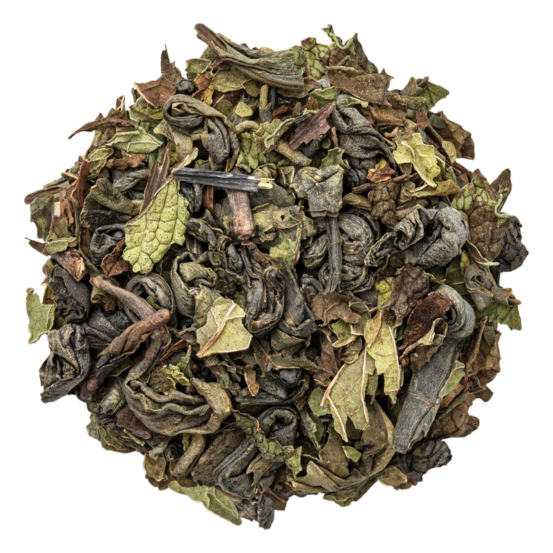 Moroccan Mint abbina le profumate foglie di menta del Marocco al pregiato tè verde cinese arrotolato a mano "china gunpowder". Bevanda molto diffusa in Medio Oriente e Marocco, il tè verde alla menta viene tradizionalmente servito zuccherato e in bicchieri trasparenti, ottimo digestivo e delizioso sia caldo sia freddo.