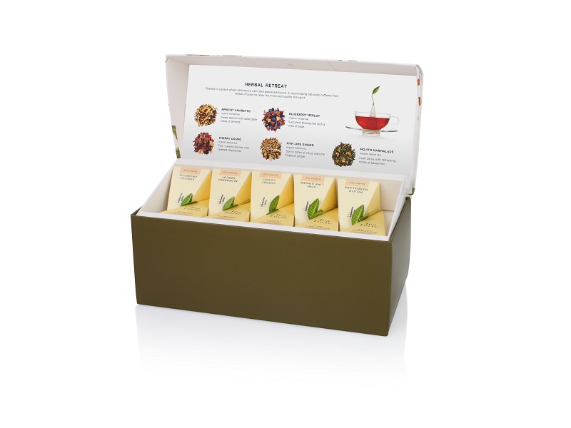 Una selezione di deliziose tisane alla frutta, senza teina, per una degustazione super golosa da sorseggiare in ogni momento della giornata! Il cofanetto Herbal Retreat Petite contiene due iconici infusori piramidali per ognuna delle cinque miscele: