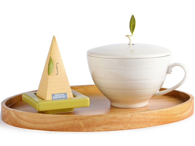 L'iconica ed elegante Café Cup in porcellana si distingue, oltre che per l'elegante design, per il coperchio forato che mantiene caldo il tè durante l'infusione, mentre si rivela la caratteristica fogliolina del filtro a piramide.