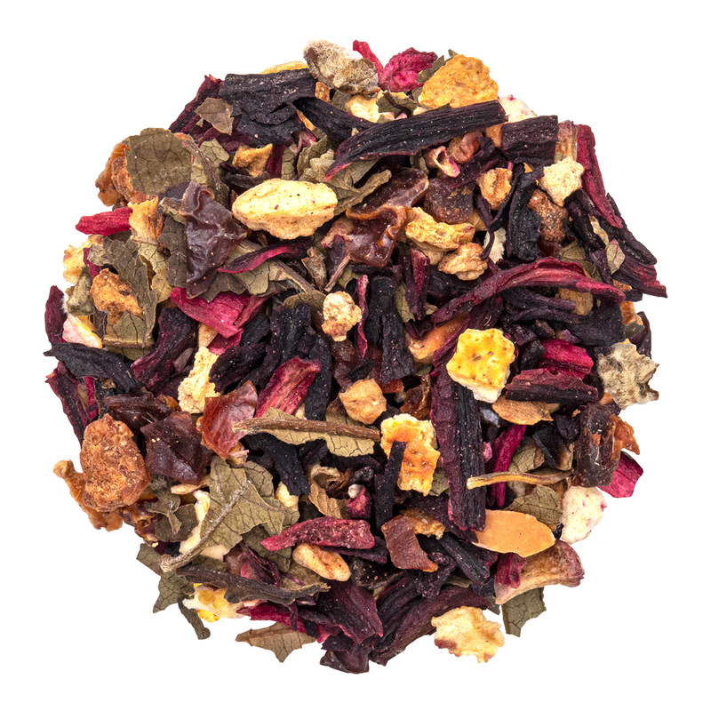 Deliziose note fruttate per una tisana fredda a base di lamponi, ibisco, mela, rosa canina.